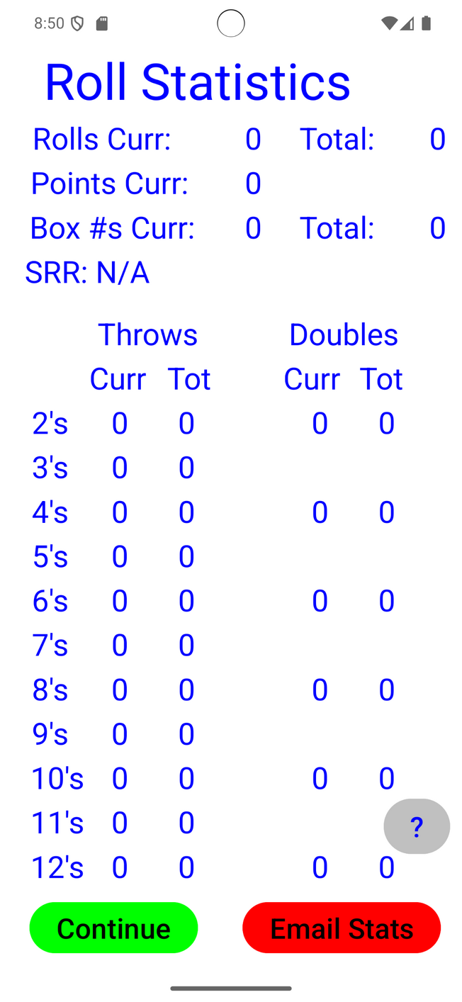 Most importantly, you have the option to email your current session data. This data can then be imported into Excel or any other brand of spreadsheet and used to improve future rolls