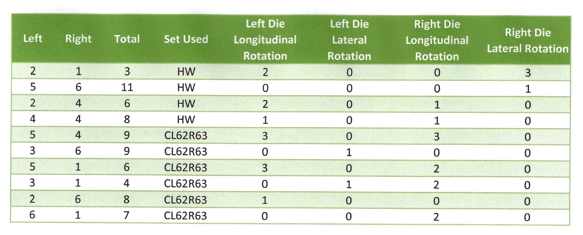 You can use the information contained in the last four columns to tweak your roll for better results.